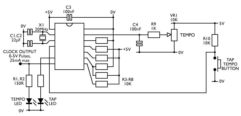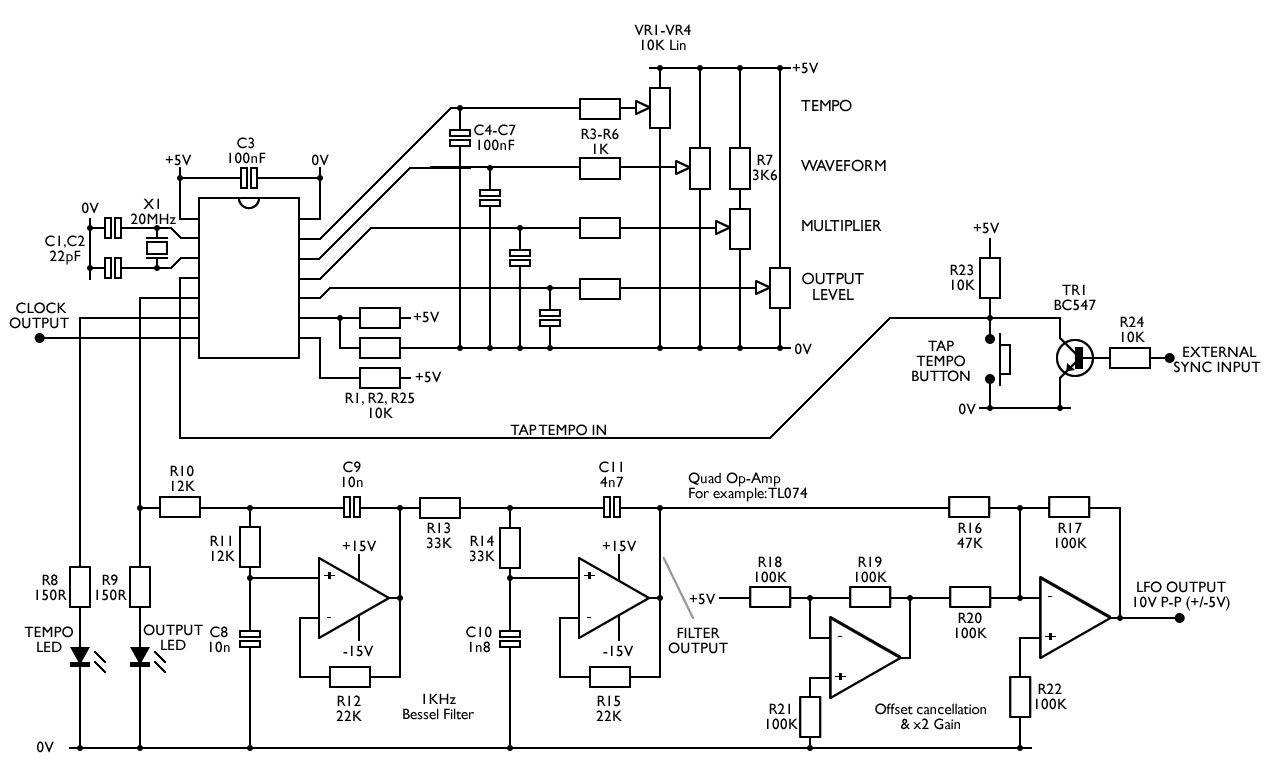 The chip also includes a tempo multiplier. This is combined with the tapped tempo to allow the LFO frequency to be set at a multiple of the tapped rate. The available multipliers are 0.5, 1, 1.5, 2, 3, and 4. This allows half- and double-time, and triplet times.